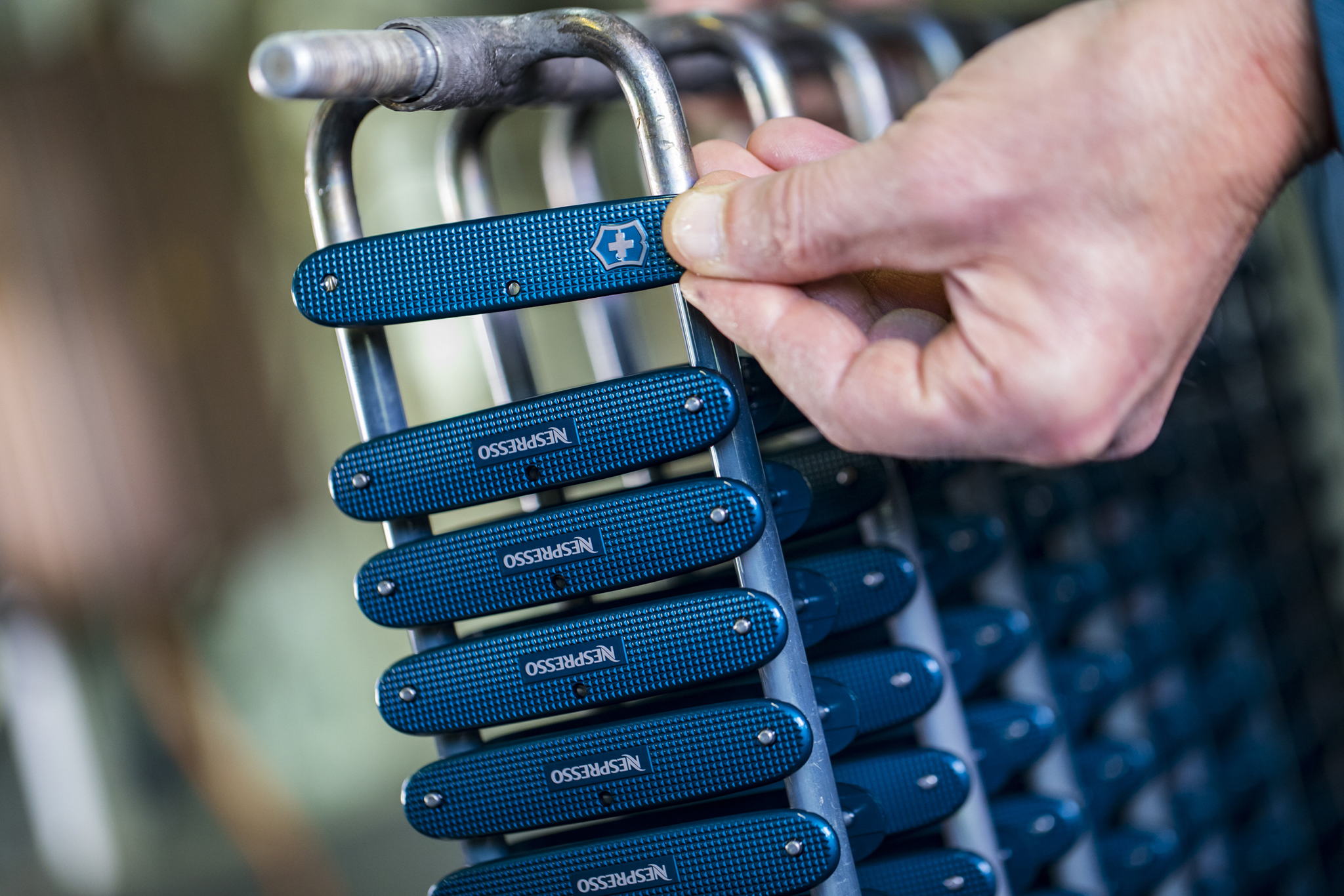 Para conmemorar 25 años del reciclaje de cápsulas de aluminio en 2016, Victorinox y Nespresso colaboraron de manera extraordinaria. Con la edición "Pioneer Nespresso Arpeggio" fue la primera navaja de bolsillo con una robusta cacha de aluminio hecha completamente de cápsulas recicladas de la popular variedad de café Grand Cru Arpeggio, con un brillante acabado púrpura oscuro. Esto fue seguido un año más tarde por el lanzamiento de otro artículo codiciado por los coleccionistas en la forma de la "Pioneer Nespresso Livanto", que venía en un diseño marrón cálido. Ambos modelos eran de edición limitada y de gran demanda.