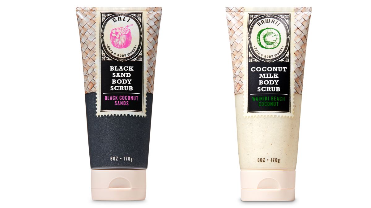 Para esta colección, Bath & Body Works agrega dos exfoliantes para el cuidado de la piel: Black Coconut Sand Body Scrub, formulado con piedra pómez volcánica suave, es un exfoliante que ayuda a eliminar las células opacas y secas de la piel para que se pueda notar un mejor cutis, dejando un increíble aroma a coco.