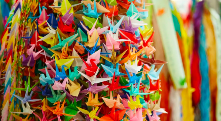 Este fenómeno mundial, fuertemente asociado con la cultura japonesa, juega un fuerte papel simbólico en lugares como Hiroshima, donde se cree que si logras doblar 1000 grullas de papel se te cumpliría un deseo, o bien se te otorgaría salud y buena fortuna, algo que sin duda más de uno desearía en estos tiempos.