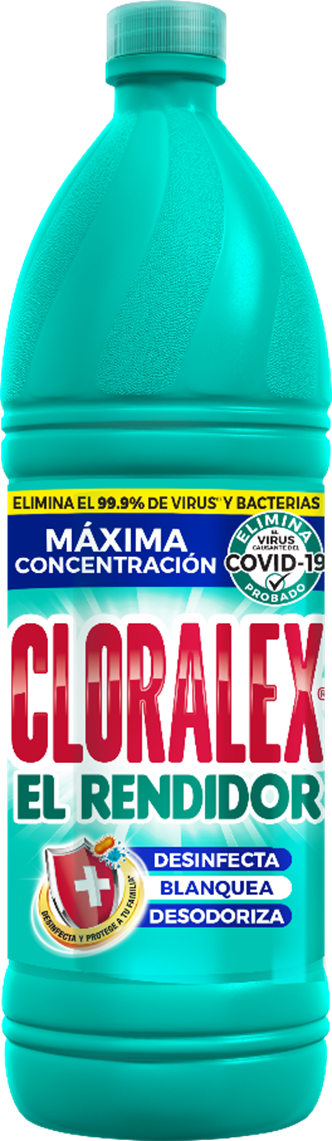 USOS CORRECTOS DEL CLORO:Se reitera a la comunidad que para eliminar hasta en 99.9% de virus y bacterias es importante: · Para desinfectar agua para beber: Agregar 2 gotas de cloro en 1 litro de agua y esperar 15 minutos. · En tinacos y agua almacenada: Agregar 1 cucharada (10ml) de cloro por cada 100L de agua y esperar 15 minutos. · Para desinfectar frutas y verduras: Eliminar el exceso de suciedad con agua y jabón, agregar 10 gotas de CLORALEX® El Rendidor en un litro de agua y sumergirlas 5 minutos. · Pisos y superficies: Agregar 1/3 taza (80 ml) de cloro en 1/2 cubeta de agua (4,5 L), aplicar o trapear y esperar 5 minutos. Su correcta aplicación elimina SARS-CoV-2, virus causante de COVID-19, y otros virus como, Influenza A(H1N1), Influenza Aviar A(H3N2), Influenza Aviar A(H7N9), Rinovirus tipo 37, Rotavirus humano, Virus Respiratorio Sincitial, Coronavirus humano y Hepatitis A. |