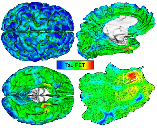 *La aplicación de un método automatizado a las imágenes cerebrales reveló dónde emergen por primera vez en la corteza cerebral los depósitos de tau, una proteína implicada en la enfermedad de Alzheimer. *Los depósitos de tau en esta pequeña región fueron altamente predictivos de la posterior propagación de tau a través del cerebro. |