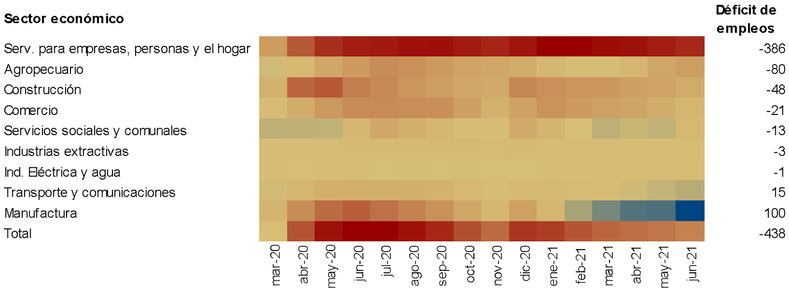 | Datos a junio de 2021 muestran que aún prevalece un déficit de 438 mil empleos respecto al nivel pre-pandemia |