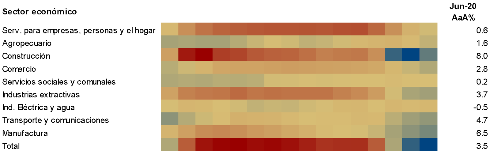 A pesar de que ciertos sectores comienzan a tener tasas de crecimiento interanuales positivas, gran parte de este crecimiento se explica por un efecto base |