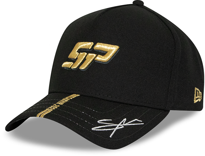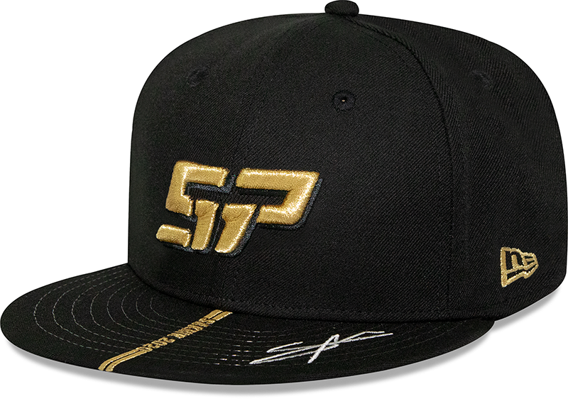 Están las siluetas 59FIFTY y 9FORTY en color negro con el logo SP bordado en color dorado, junto con la firma de ‘Checo’ Pérez y, en la visera, una sutil línea dorada que dice “Sakhir 2020”, conmemorando la primera victoria de Sergio en la Fórmula 1. |
