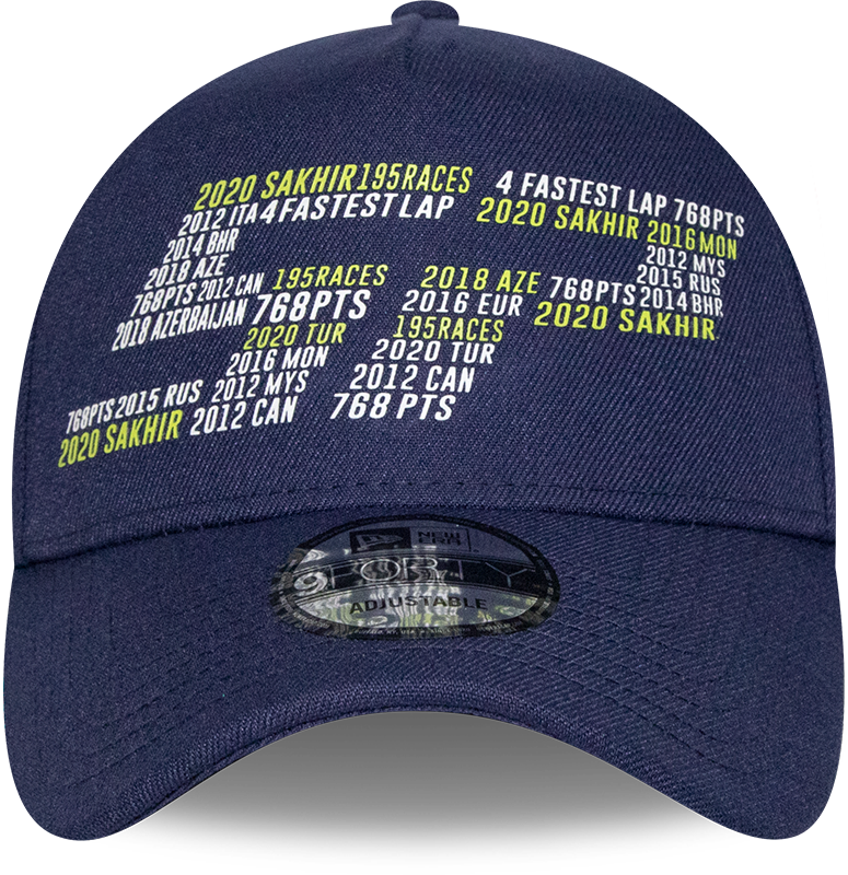 La colección incluye diferentes diseños en las siluetas 9FORTY, 59FIFTY y 39THIRTY complementados con dos playeras y una chamarra que destacan los grandes momentos de automovilismo de Sergio. Por ejemplo, este diseño tiene el logo SP en blanco y verde, formado con palabras que enlistan todos los podios de ‘Checo’ en la Fórmula 1 hasta el año pasado: 2012 Malasia, 2012 Canadá, 2012 Italia, 2014 Bahréin, 2015 Rusia, 2016 Mónaco, 2016 Europa, 2018 Azerbaiyán, 2020 Turquía y 2020 Sakhir. |
