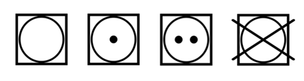 | Por otro lado, en el apartado de símbolos de secadora podemos encontrar los siguientes: - Lo más habitual es el símbolo que indica la secadora, un círculo dentro del cuadrado. Si el símbolo está tachado o no, indica si puede o no utilizarse la secadora