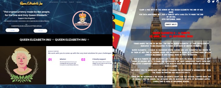 que ofrecen tokens de criptomonedas y NFTs con el nombre de la reina