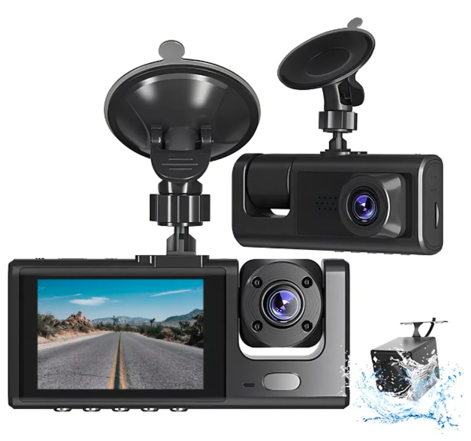 2.- Cámaras de conducción. Tres cámaras con resolución 1080p Full HD con puertos USB que registran las condiciones de conducción desde el frente, el interior y la parte trasera del vehículo al mismo tiempo. Te permitirán observar cada detalle al reproducir los videos en la cámara de tablero o en una computadora.