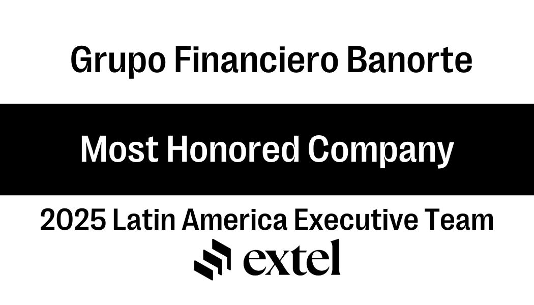 Ciudad de México, 27 de agosto de 2025.- Extel (antes Institutional Investor), empresa internacional especializada en temas financieros, entregó a Carlos Hank González, Presidente del Consejo de Administración de Grupo Financiero Banorte (GFNorte), el reconocimiento como Most Honored Company del ranking anual Latin America Executive Team 2025.